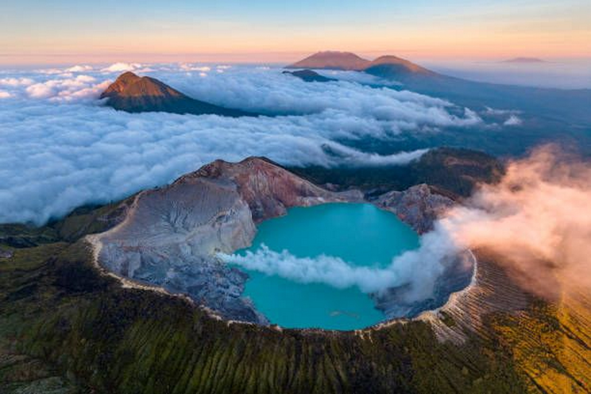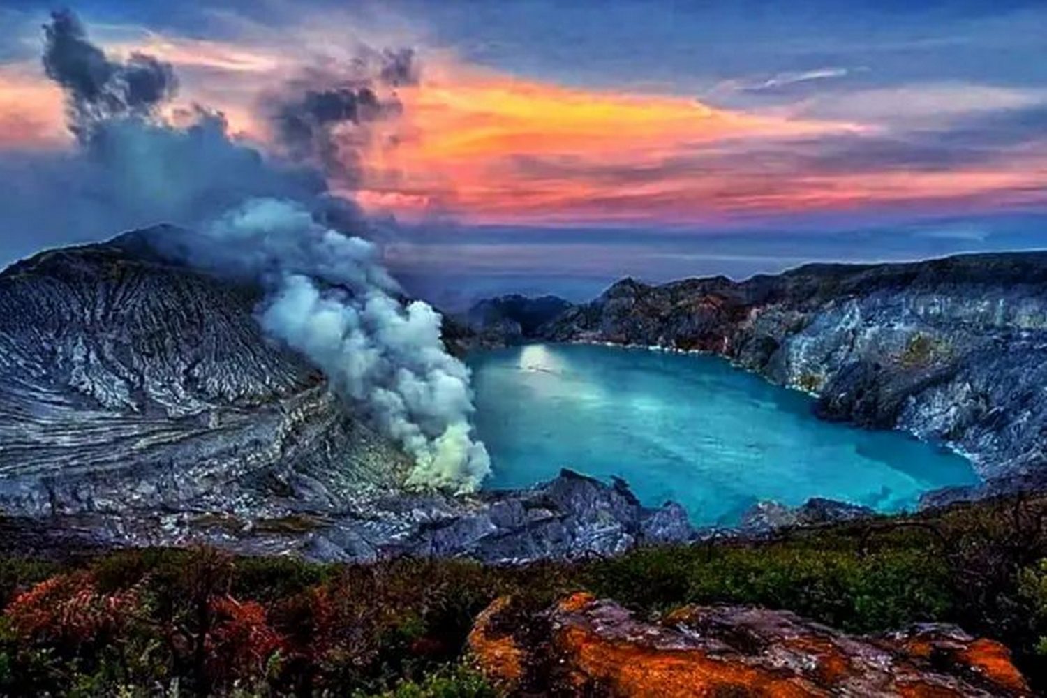 MT Ijen (Mount Ijen) in East Java, Indonesia, is famous for the rare Blue Fire phenomenon, which is an electric blue flame that appears from sulfur gas that burns when it meets the air, only clearly visible at night, usually between 02.00-04.00 in the morning, offering a magical view of Ijen Crater with a turquoise acid crater lake and unique local sulfur mining activity.