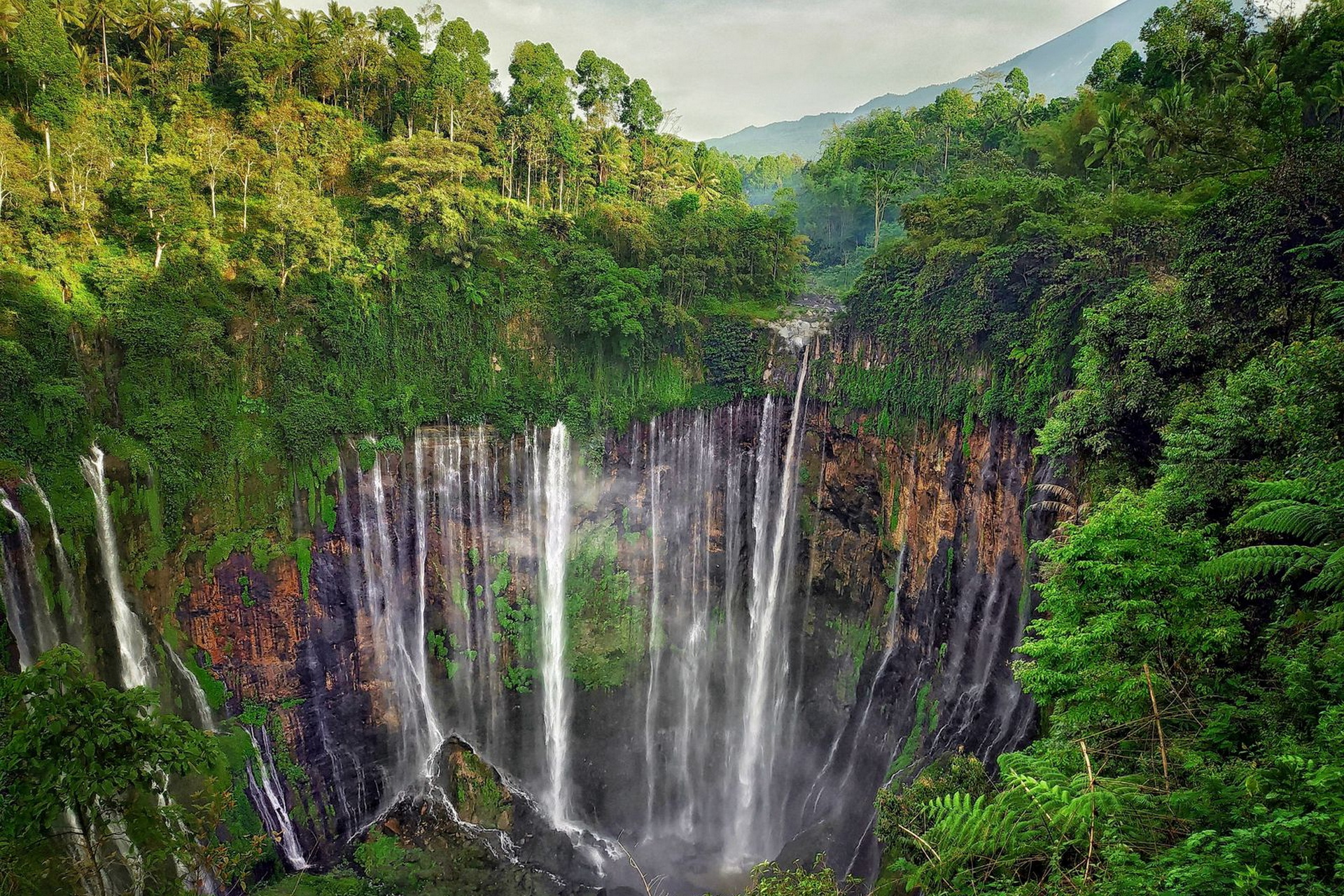 Tumpak Sewu Waterfall, also known as Coban Sewu, is a magnificent 120 meter high waterfall that is famous for its formation like “a thousand waterfalls” (water curtain) at the border of Lumajang and Malang, East Java, offers spectacular natural tropical natural beauty, but requires a challenging trekking to reach it, making it a favorite of nature lovers and adventurers